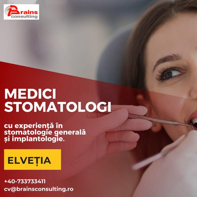 Brains Consulting recrutează,  pentru un un grup de  clinici dentare situate în partea franceză a Elveției, medici stomatologi cu experiență în stomatologie generală și implantologie.