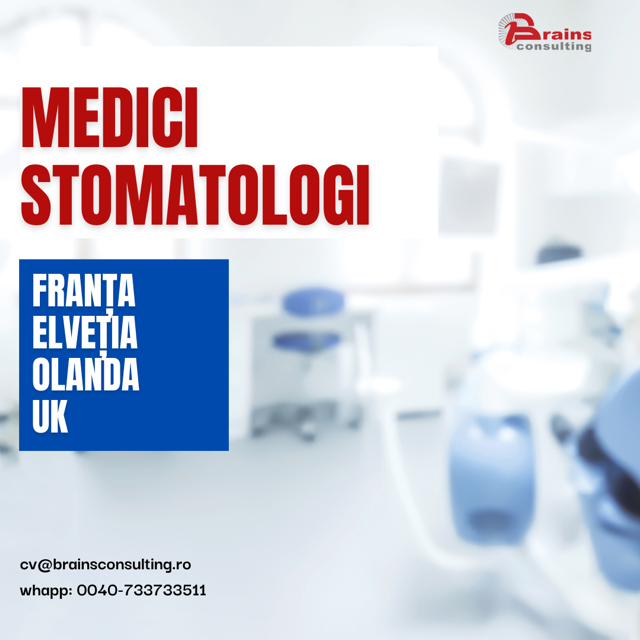 Brains Consulting – firmă de recrutare si plasare de forță de muncă din Romania recrutează Medici Stomatologi specialisti si generalisti