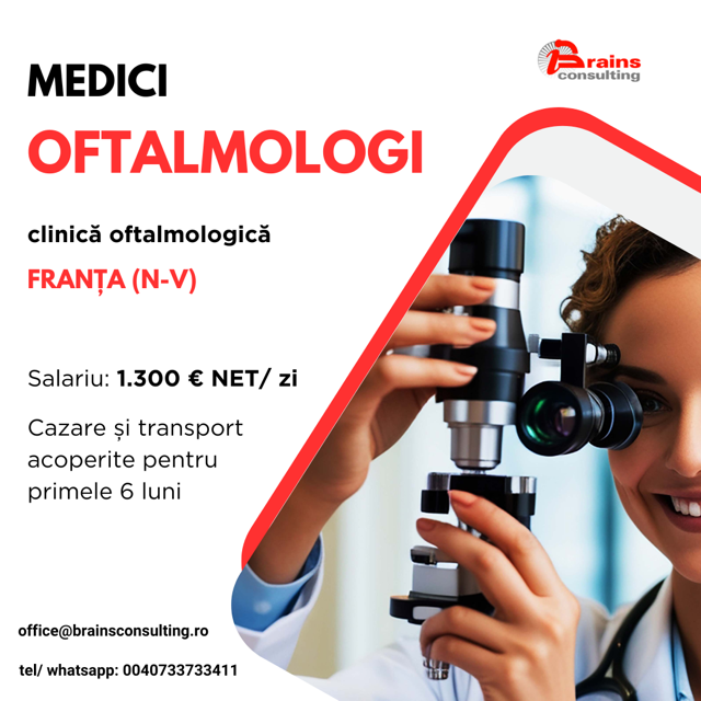 Căutăm medici specialiști Oftalmologie – fie debutant, fie cu experiență – care să se alăture echipei medicale.