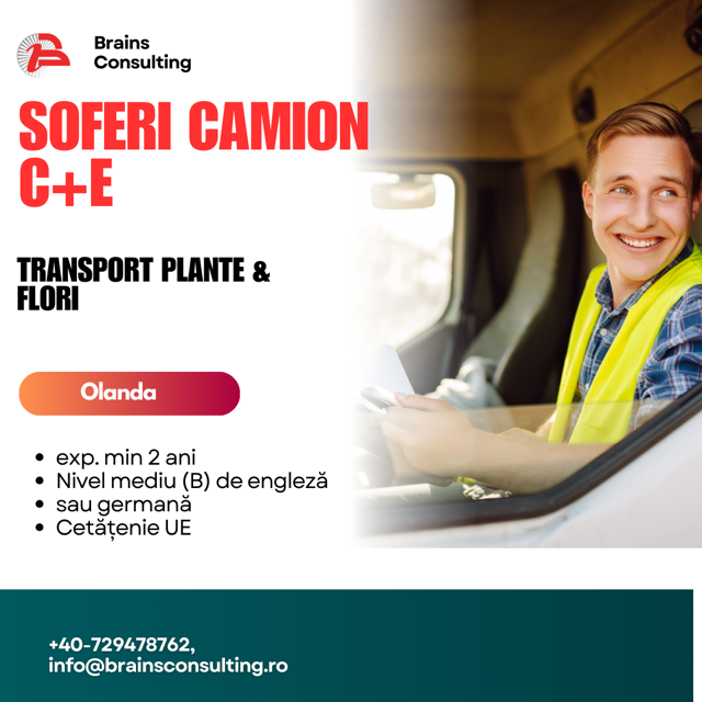 🟥 Șoferi Camion C+E – Transport plante & flori – Olanda