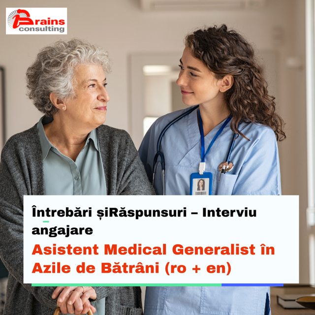 🟥 ÎNTREBĂRI ȘI RĂSPUNSURI – INTERVIU ASISTENT MEDICAL GENERALIST (Română + English) 1. Povestiți-mi puțin despre experiența dumneavoastră ca asistent medical. Tell me a bit about your experience as a nurse. 🩹 Răspuns sugerat: Am lucrat ca asistent medical generalist timp de ___ ani, având experiență în îngrijirea pacienților vârstnici, administrarea tratamentelor, monitorizarea semnelor […]