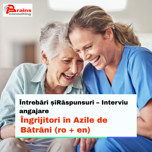 Întrebări și Răspunsuri – Interviu angajare Îngrijitori în Azile de Bătrâni (Română + Engleză) 1. Povestiți-mi puțin despre dumneavoastră și experiența în domeniul îngrijirii. Răspuns posibil: Am lucrat ca îngrijitoare timp de [x ani] într-un centru pentru vârstnici, unde m-am ocupat de igienă, servirea meselor și sprijin emoțional. 1. Tell me a little about […]