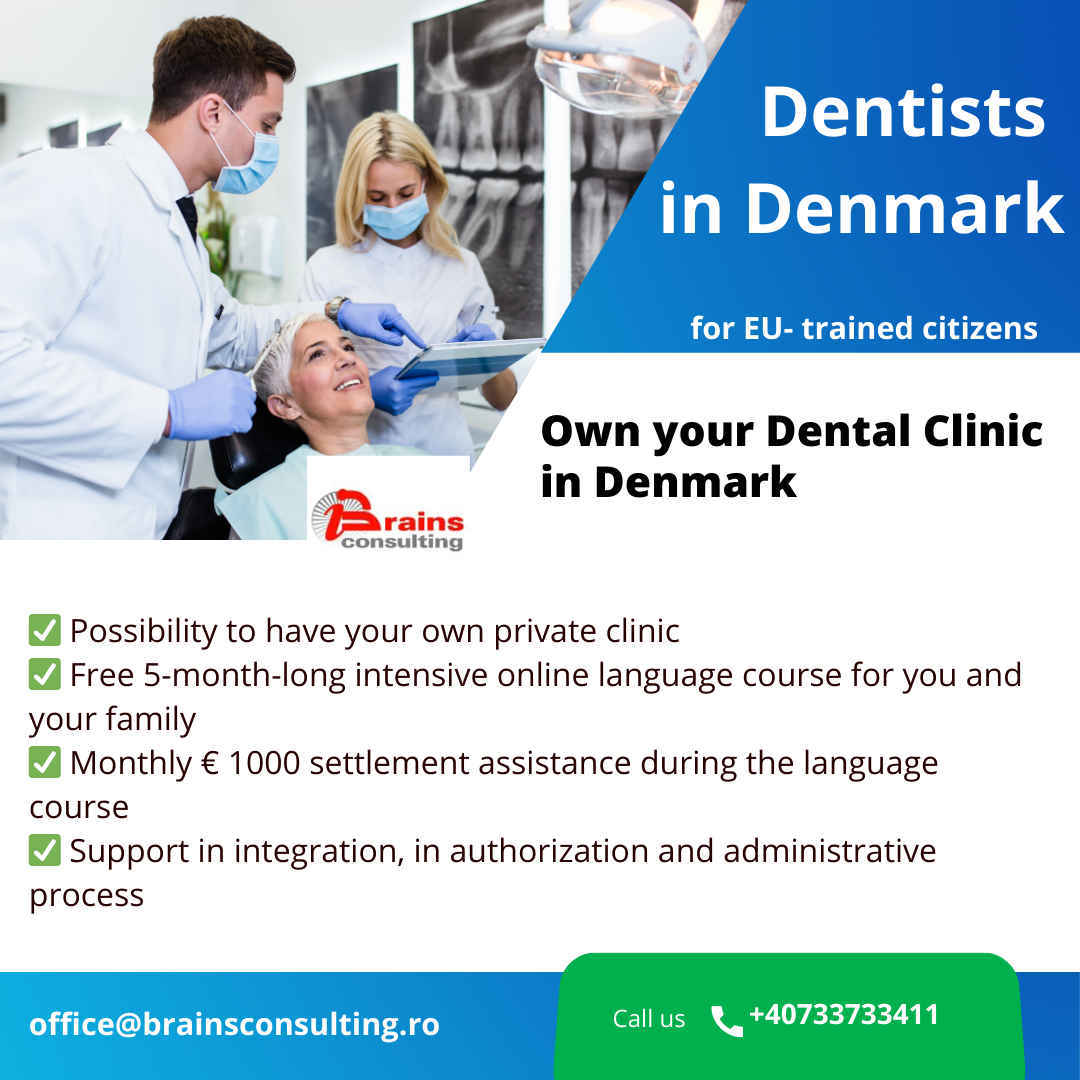 You will become a clinic owner in one of Europe’s top welfare states, in Scandinavia, which will provide great financial potentials. You will work in your private dental clinic in Denmark with stable surroundings, attractive working conditions and a solid financial situation. You will have a better work-life balance and secure future.