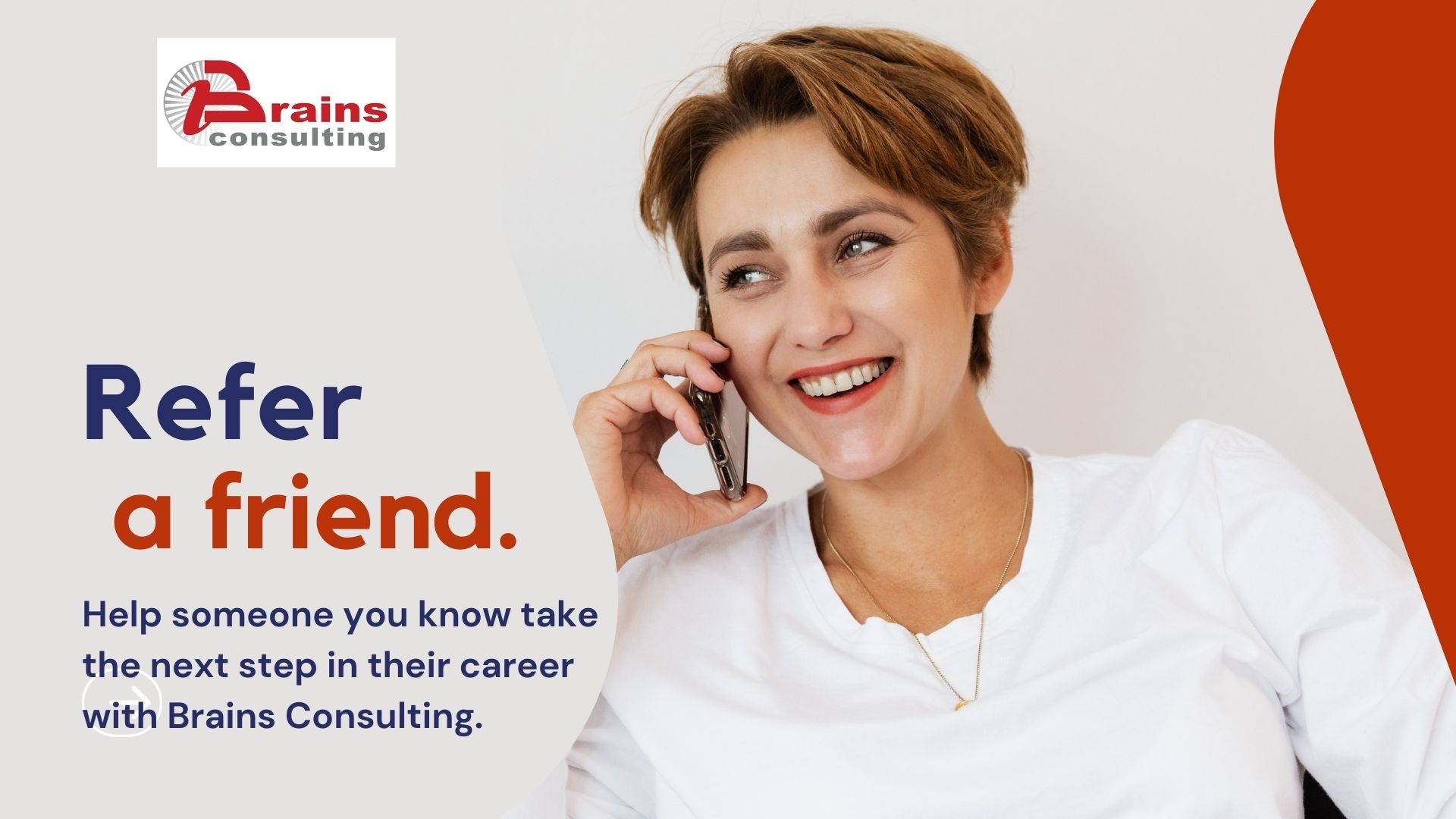 • You must gain express permission from the referred candidate to pass their information to Brains Consulting, prior to sending us their contact information.