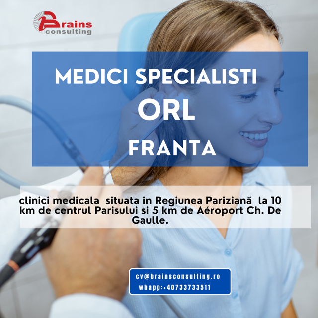 - ORL: incepand cu 8000 euro net / luna.Posibilitatea de a face chirurgie.