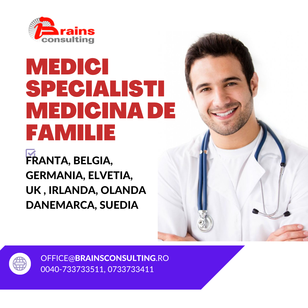 MEDICI SPECIALISTI Medicina Generala / FAMILIE - FRANTA, BELGIA, UK, IRLANDA, OLANDA, GERMANIA, ELVETIA, SUEDIA, DANEMARCA