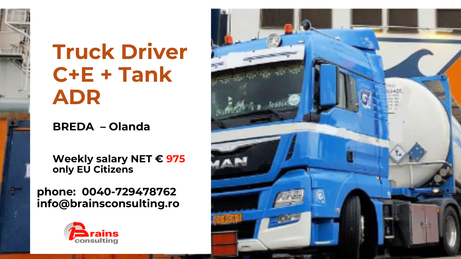 For our Dutch client near Breda we are looking for International CE Truck Drivers with valid tank/cistern ADR .